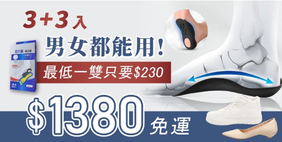 15分鐘前男女都能用!【買三送三】再享免運! 足の里✨足弓墊【六入】 最低一雙只要$230🤩也太划算了吧!NT$1380